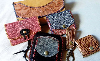 多種多色の皮と40色の糸を使い、手縫いで仕上げたオリジナル革工芸。